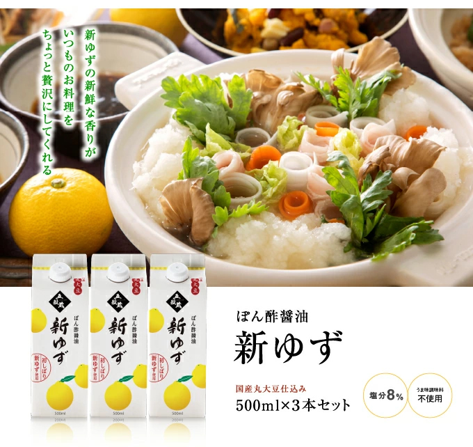 ゆずの香りにこだわりぬいた特別な「新ゆずぽん酢」。